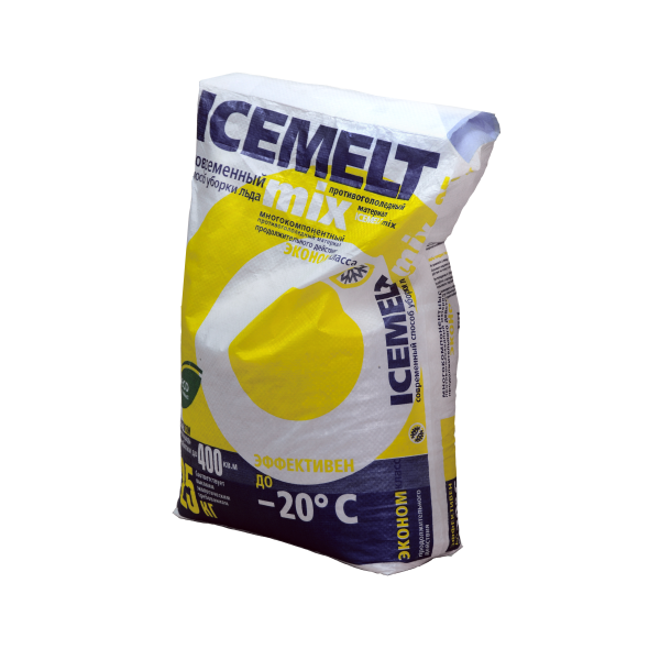 Использование антигололедных реагентов – это, пожалуй, самый удобный и эффективный способ борьбы с наледью на сегодняшний день. Серия реагентов Icemelt mix (ХКНМ марка А) позволяет не только с легкостью избавляться от гололеда, но и предотвращать его появление. Реагентом эконом класса является Айсмелт микс.