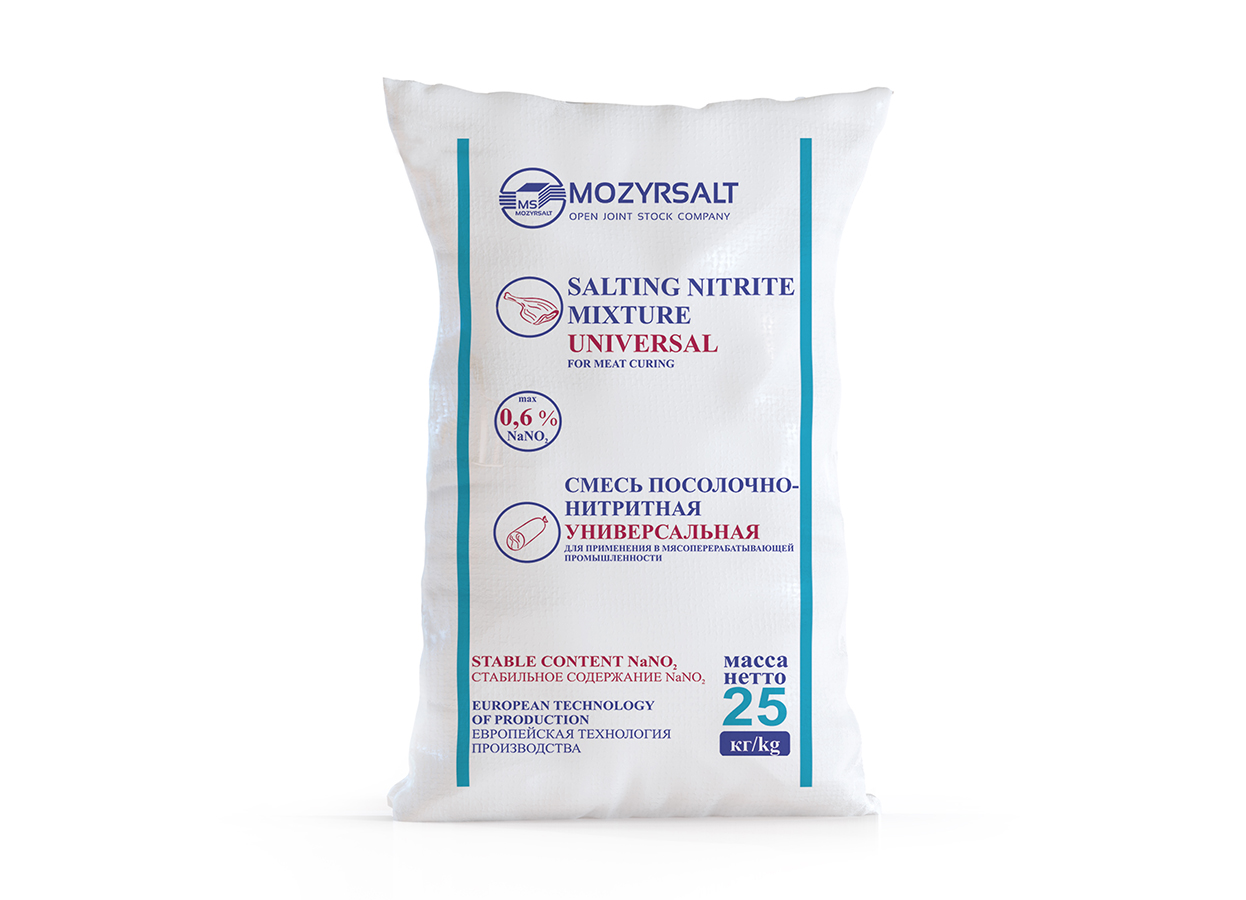 Комплексная пищевая добавка для мясной продукции «Смесь посолочно-нитритная «Универсальная» (ПНС) произведена по технологическим регламентам ТР ТС 029/2012 и ТР ТС 021/2011 и соответствует всем требованиям ТУ РБ 400087365.001-2003.